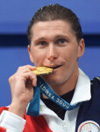 Képünkön a férfi 100 méteres hátúszásban olimpiai bajnok amerikai Lenny Krayzelburg harap aranyérmébe a hétfői eredményhirdetés után a sydneyi úszóstadion, az Aqua Center dobogójának legmagasabb fokán állva. Krayzelburg 53.72 másodperces új olimpiai csúcssal győzött.